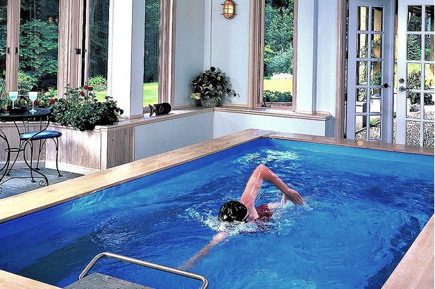 Для активного плаванья пригодным считается бассейн, если его длина составляет не менее 15 м, при этом бассейн с противотоком может занимать площадь всего от 2,4 м х 4,6 м!