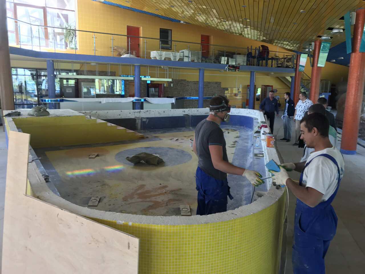 На указанных объектах будет осуществляться замена покрытия бассейна с применением эффективной гидроизоляции Schomburg (Германия), модернизация установленного оборудования, автоматической системы очистки воды и контроля за ее параметрами.