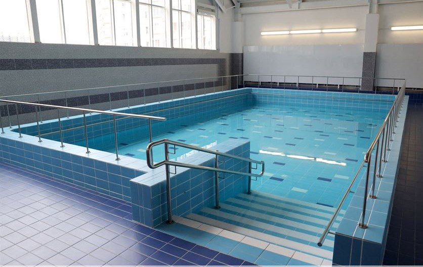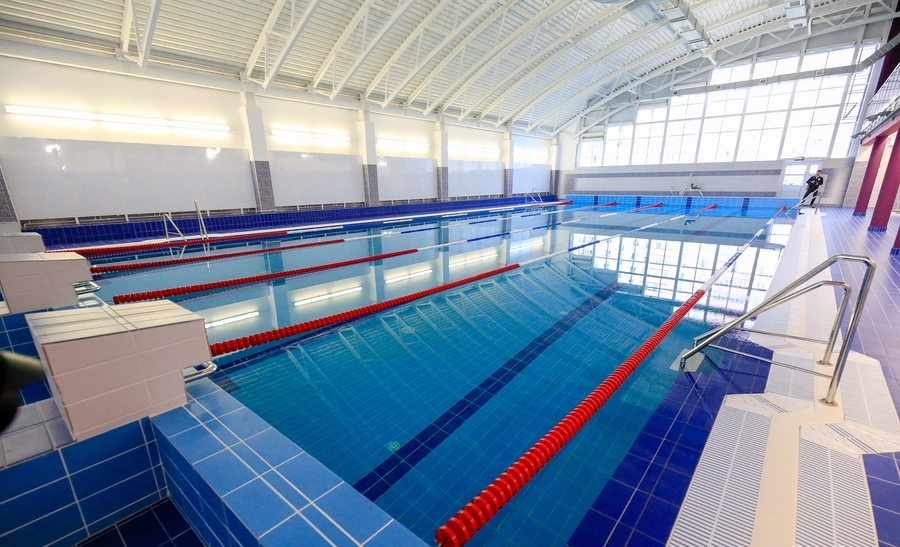 Вход в бассейн предусмотрен отдельный. Предполагается, что посещать плавательный комплекс смогут не только учащиеся новостройки, но и жители микрорайона. Чаши бассейна уже заполнены, водная гладь так и манит поплавать. А когда будет можно?
