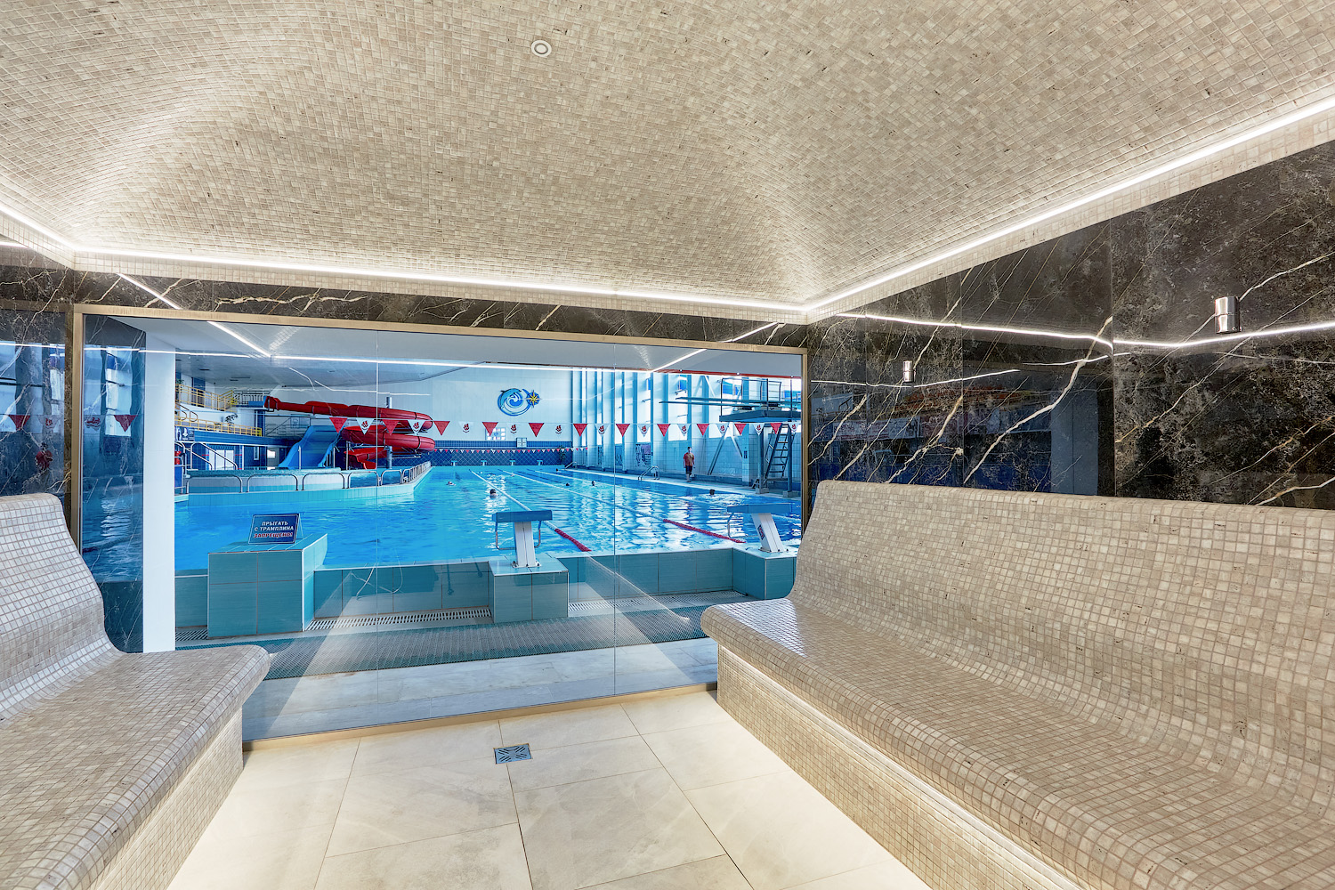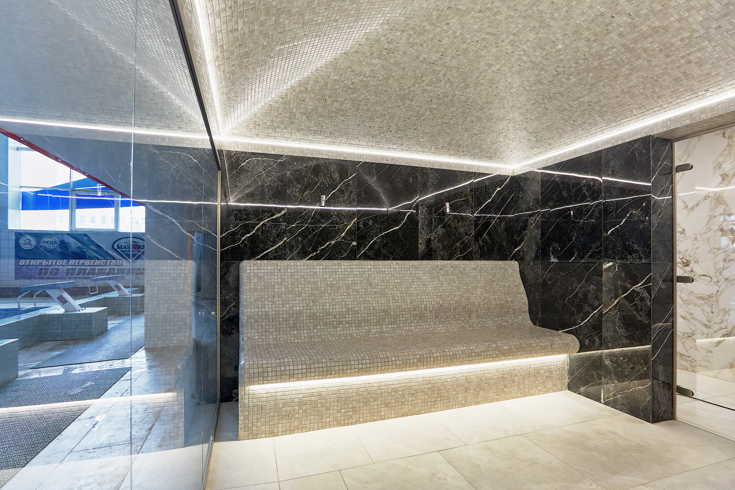 Главное отличие — в микроклимате: в сауне поддерживается высокая температура при низкой влажности, а в хаммаме — мягкое тепло при 100% влажности. Также они различаются материалами: сауна чаще всего отделывается деревом, а хаммам — камнем, плиткой или мозаикой.