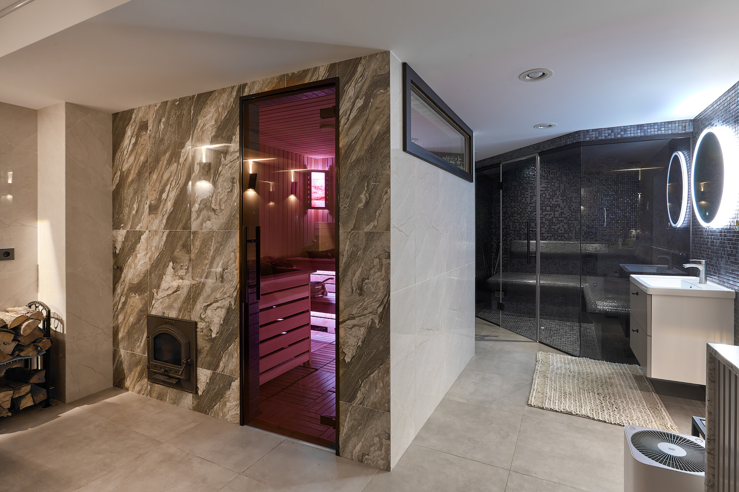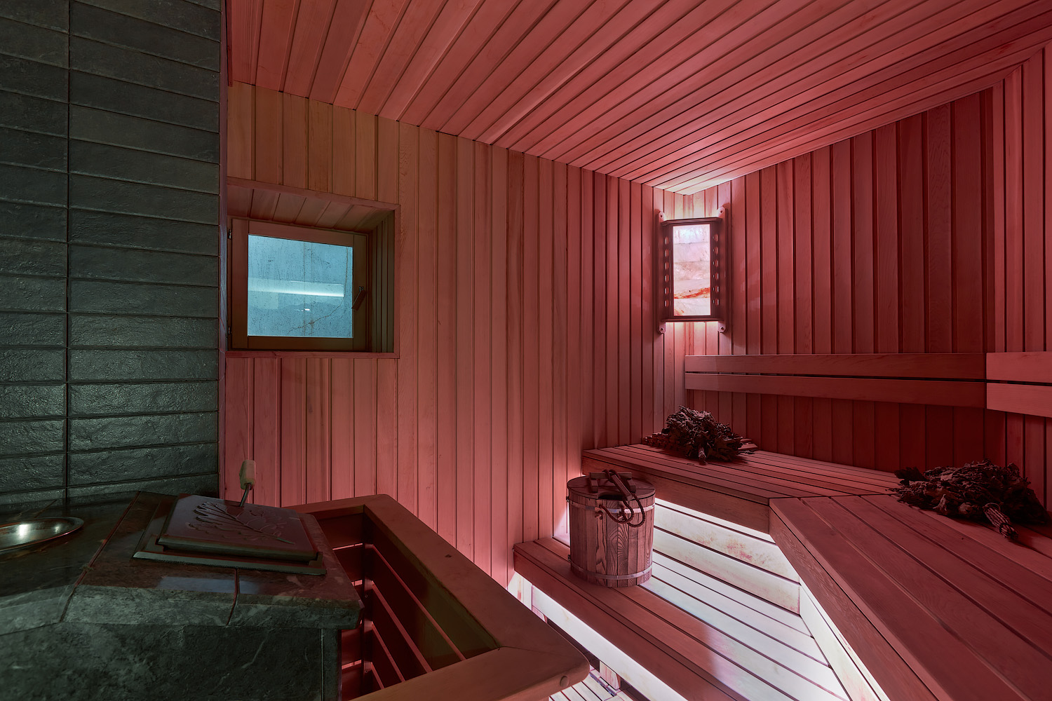 Главное отличие — в микроклимате: в сауне поддерживается высокая температура при низкой влажности, а в хаммаме — мягкое тепло при 100% влажности. Также они различаются материалами: сауна чаще всего отделывается деревом, а хаммам — камнем, плиткой или мозаикой.