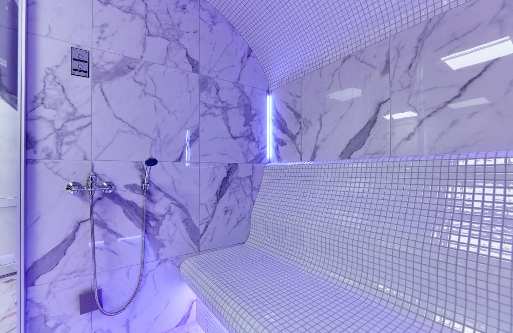 Главное отличие — в микроклимате: в сауне поддерживается высокая температура при низкой влажности, а в хаммаме — мягкое тепло при 100% влажности. Также они различаются материалами: сауна чаще всего отделывается деревом, а хаммам — камнем, плиткой или мозаикой.