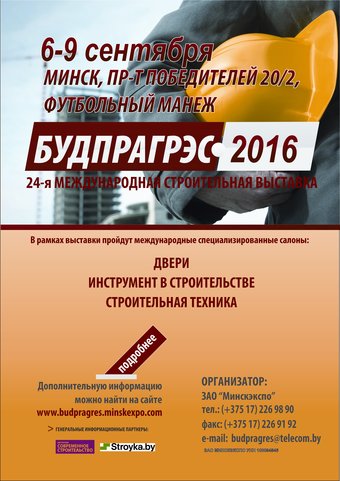 24-я международная специализированная выставка «БУДПРАГРЭС-2016» – это дополнительная возможность вывода на строительный рынок новейших технологий, материалов и конструкций, центр обмена опытом, что способствует не только развитию строительной отрасли, но и привлечению инвестиций в данный сектор экономики, укреплению деловых связей между белорусскими и зарубежными компаниями.