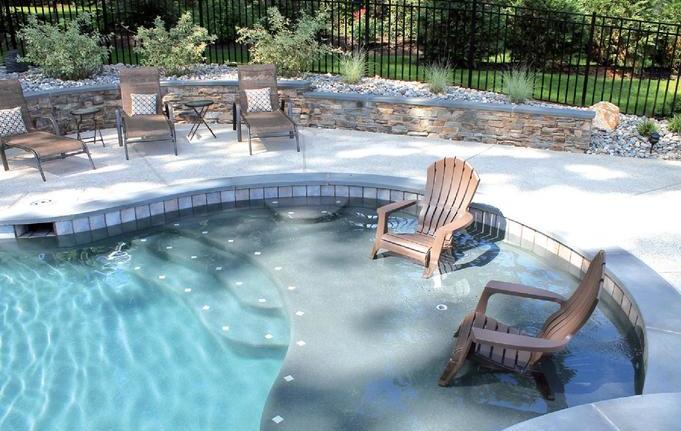 Выступы для загара внутри пространства бассейна, как правило, воспринимаются в качестве зон отдыха. Помимо этого, они являются интуитивно понятной функцией этого элемента дизайна, которая превращает бассейн в шикарный курорт. Вы можете отдохнуть на этом выступе в перерывах между сеансами плавания. Расслабиться в лежаках, слегка погруженных в воду, укрывшись от прямых лучей солнца под тентом, установленным в воде. Вы удивитесь, какое разнообразие мебели для водных зон отдыха сейчас доступно для желающих организовать в своем бассейне такую сиесту!