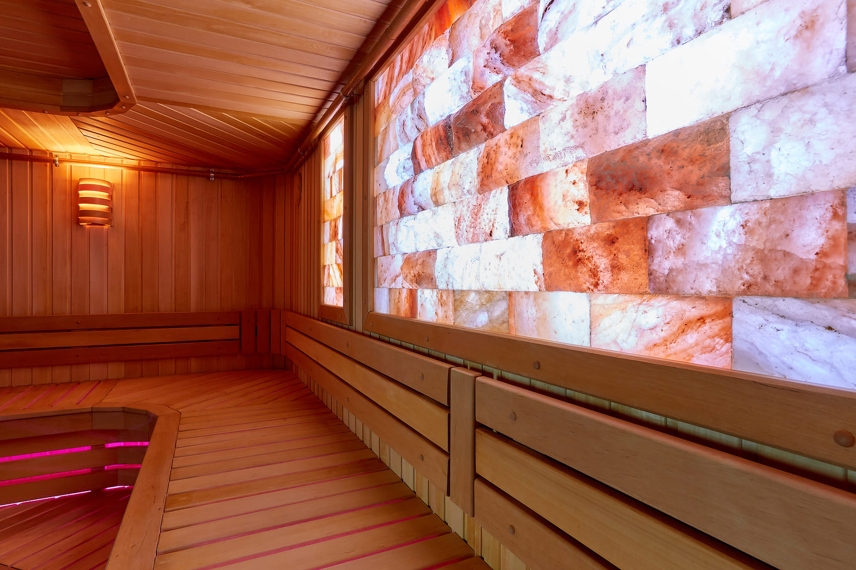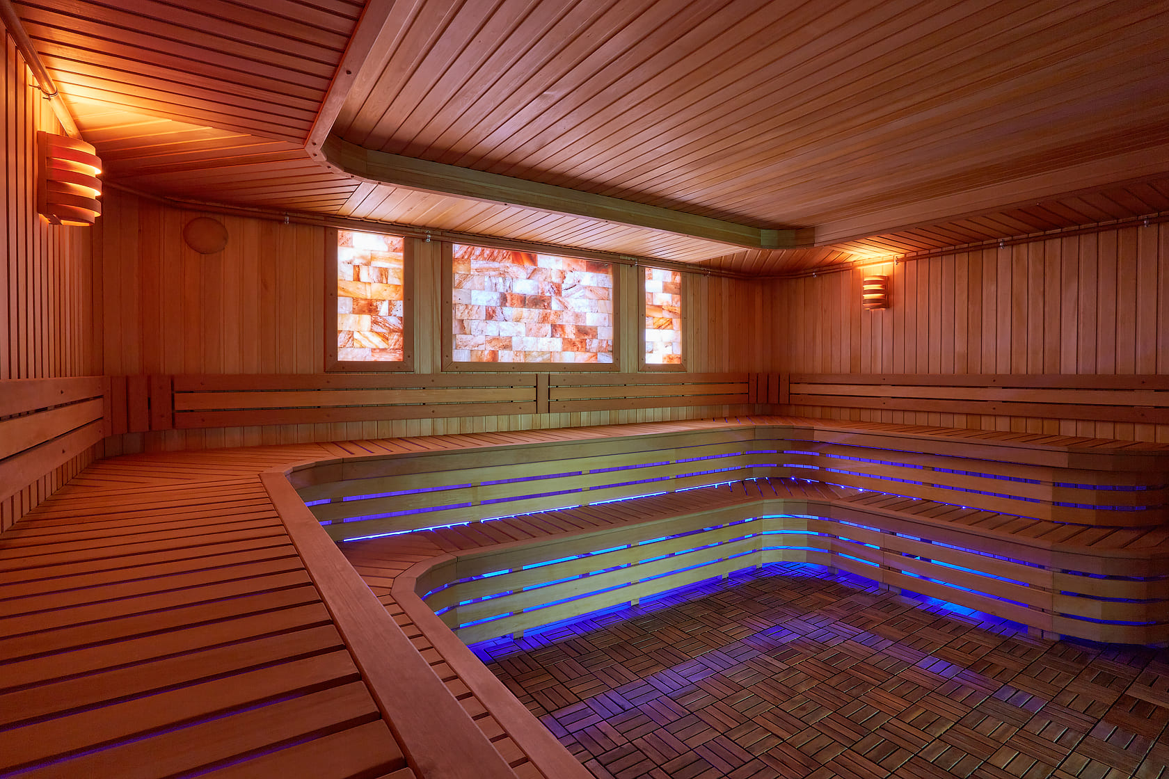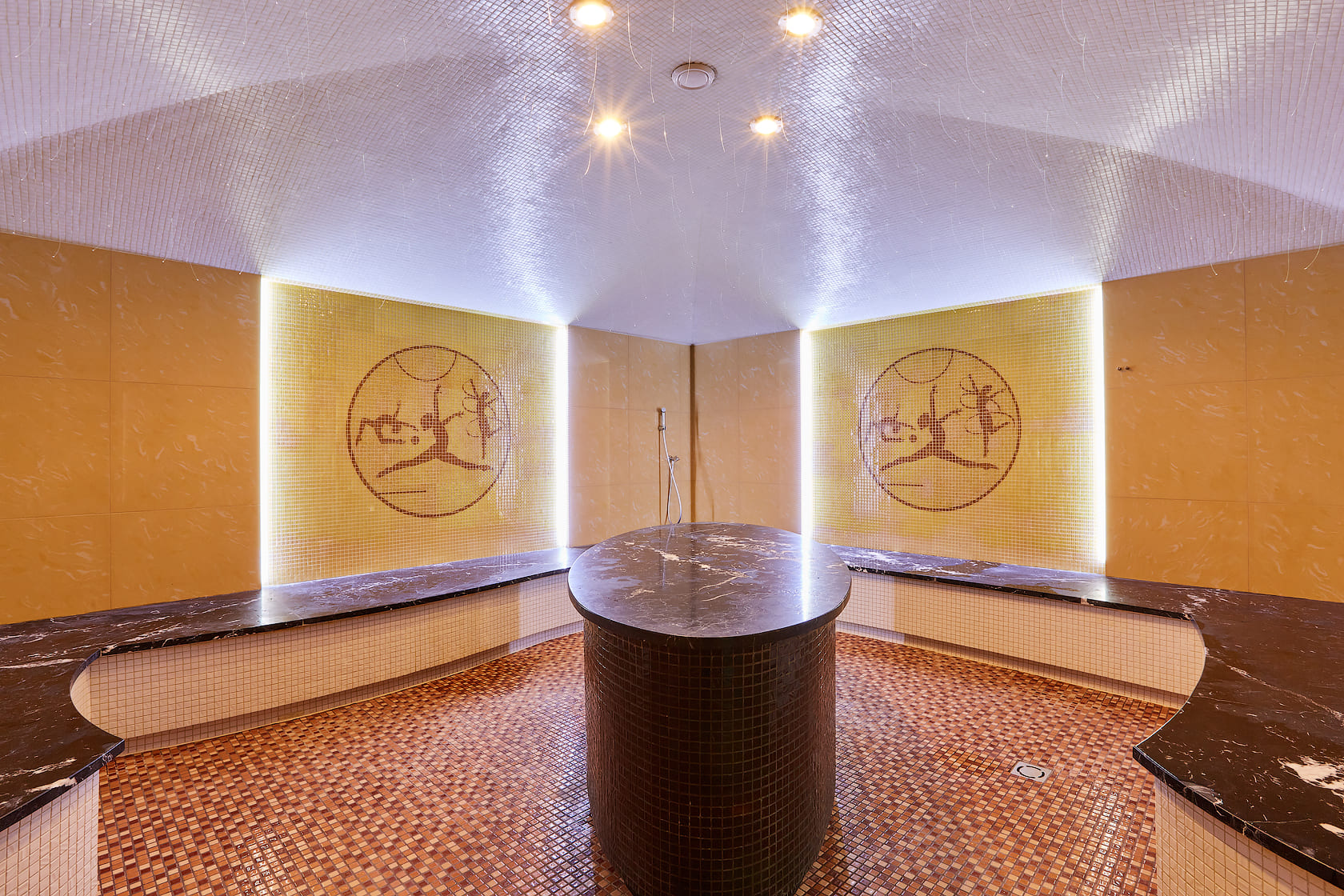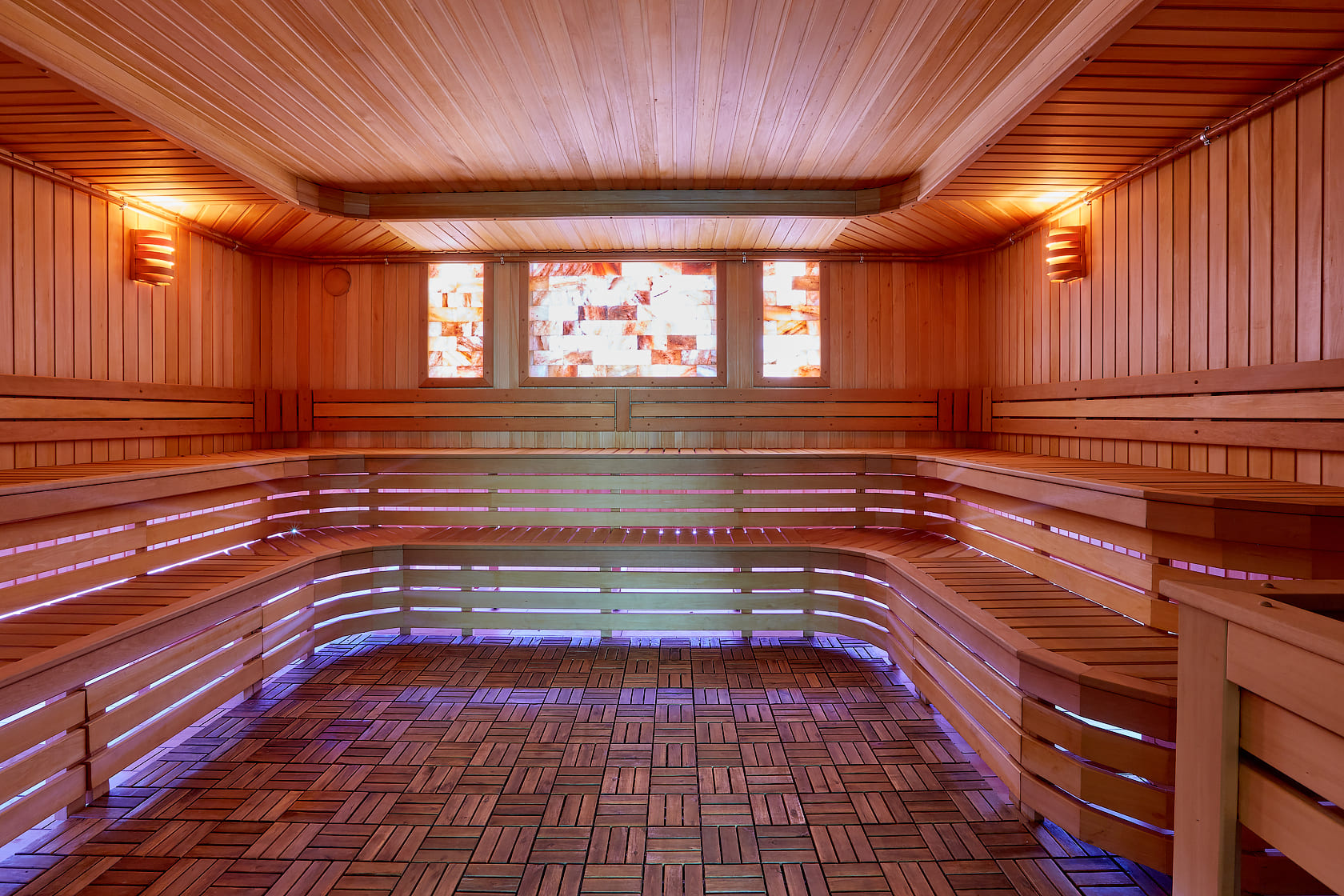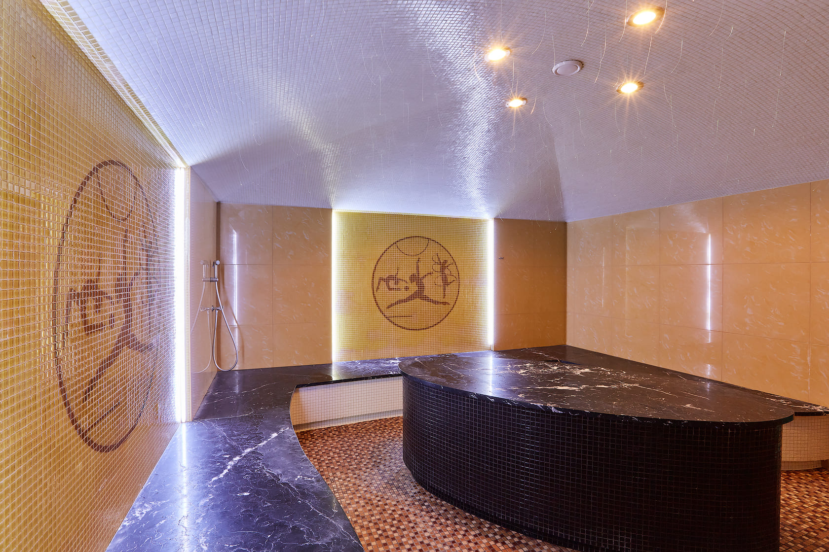 Главное отличие — в микроклимате: в сауне поддерживается высокая температура при низкой влажности, а в хаммаме — мягкое тепло при 100% влажности. Также они различаются материалами: сауна чаще всего отделывается деревом, а хаммам — камнем, плиткой или мозаикой.