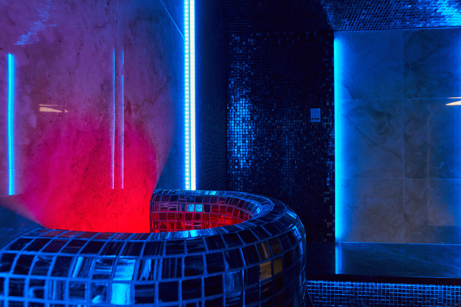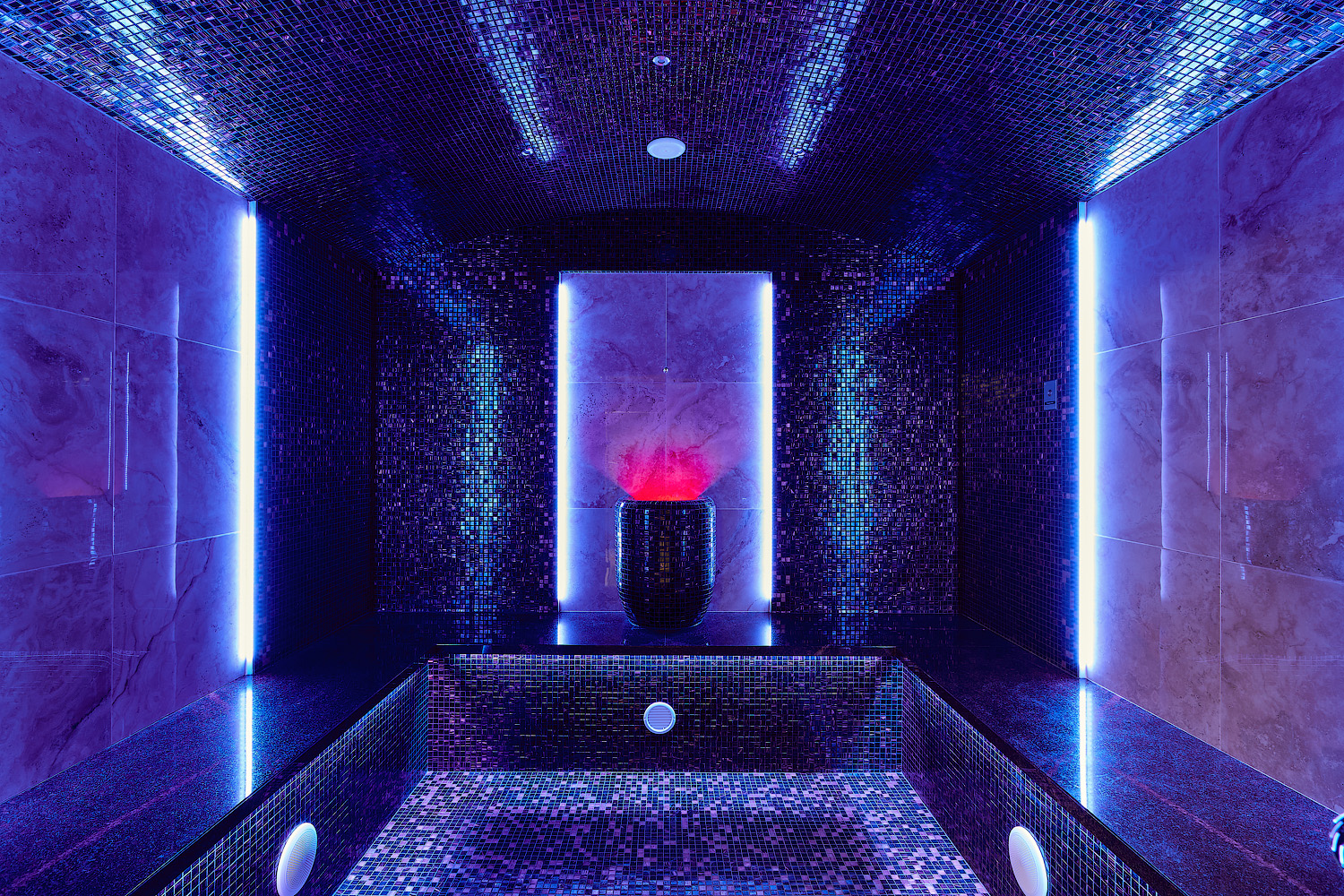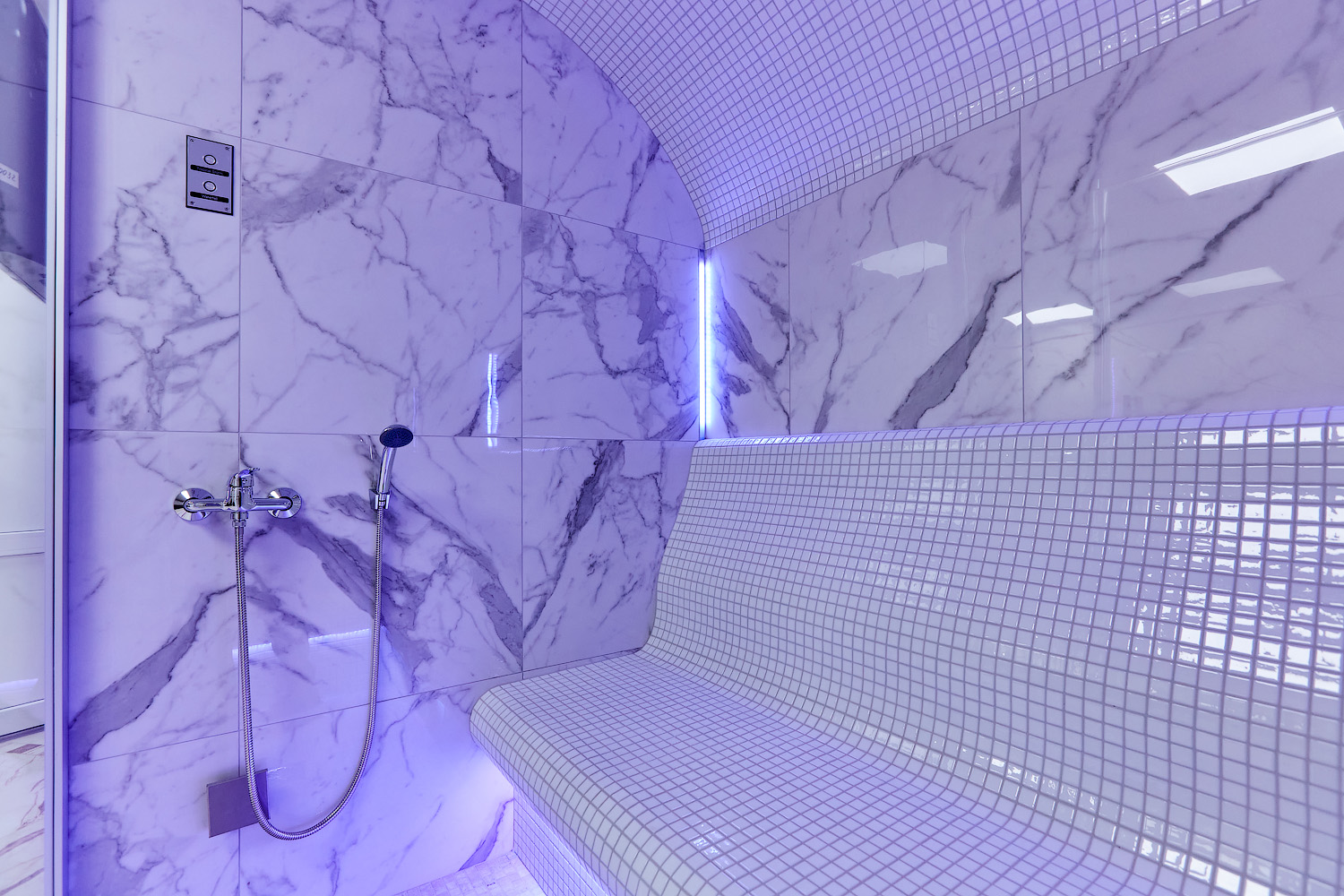 Главное отличие — в микроклимате: в сауне поддерживается высокая температура при низкой влажности, а в хаммаме — мягкое тепло при 100% влажности. Также они различаются материалами: сауна чаще всего отделывается деревом, а хаммам — камнем, плиткой или мозаикой.