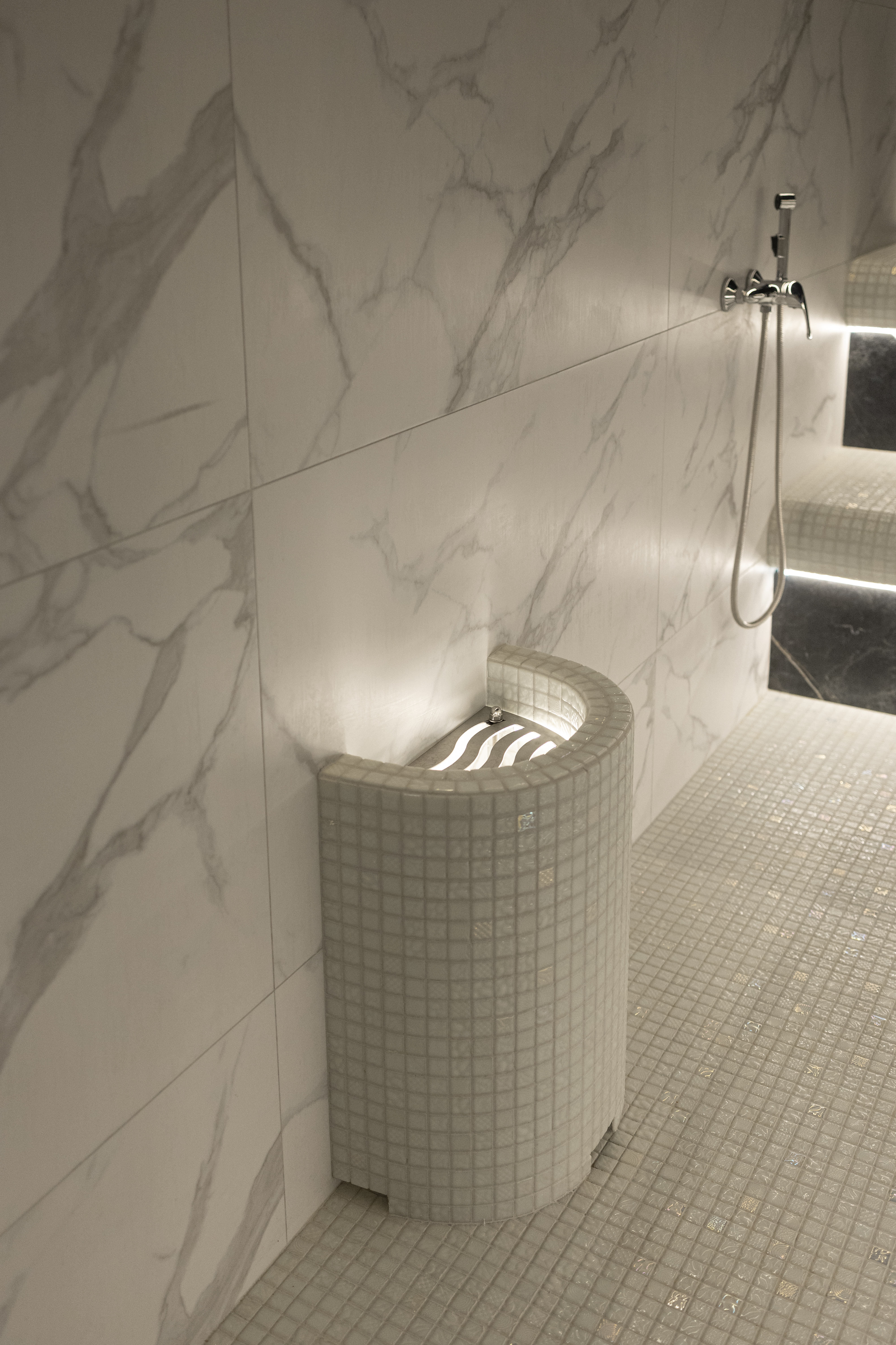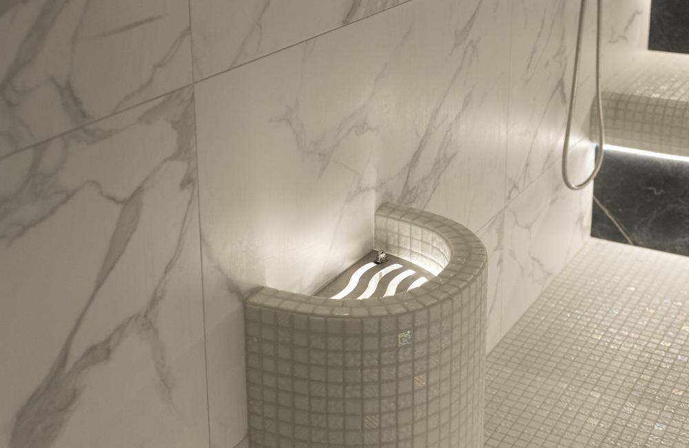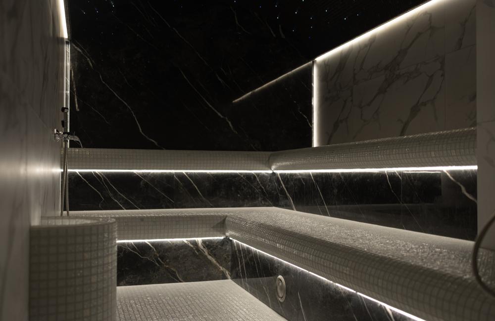 Главное отличие — в микроклимате: в сауне поддерживается высокая температура при низкой влажности, а в хаммаме — мягкое тепло при 100% влажности. Также они различаются материалами: сауна чаще всего отделывается деревом, а хаммам — камнем, плиткой или мозаикой.