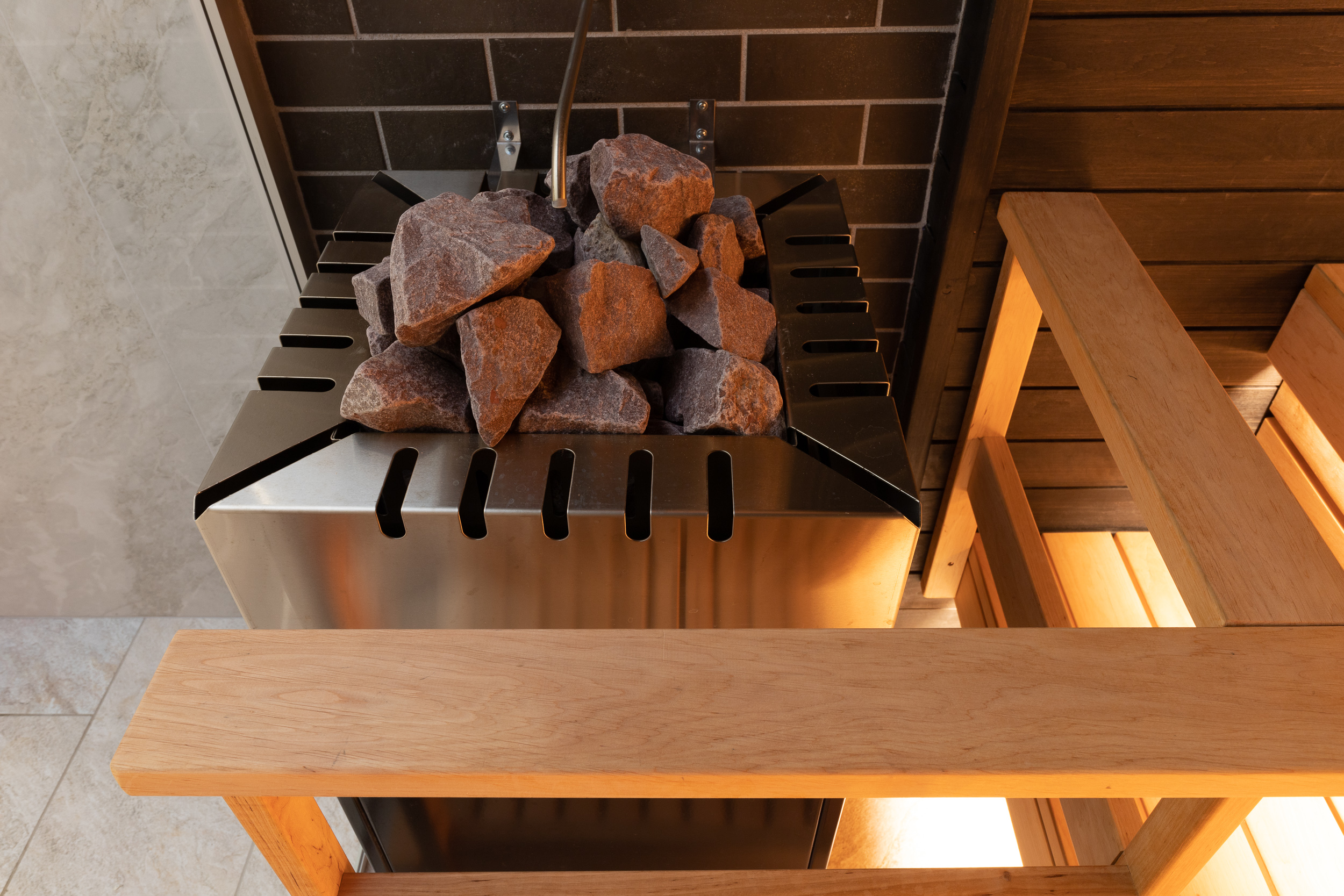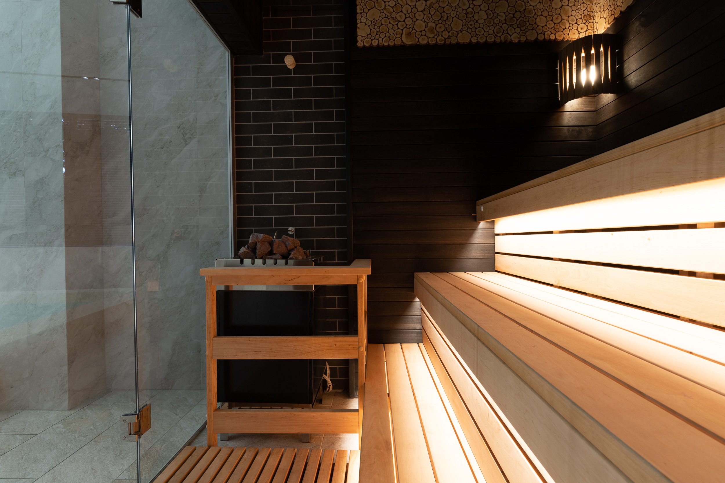 Главное отличие — в микроклимате: в сауне поддерживается высокая температура при низкой влажности, а в хаммаме — мягкое тепло при 100% влажности. Также они различаются материалами: сауна чаще всего отделывается деревом, а хаммам — камнем, плиткой или мозаикой.