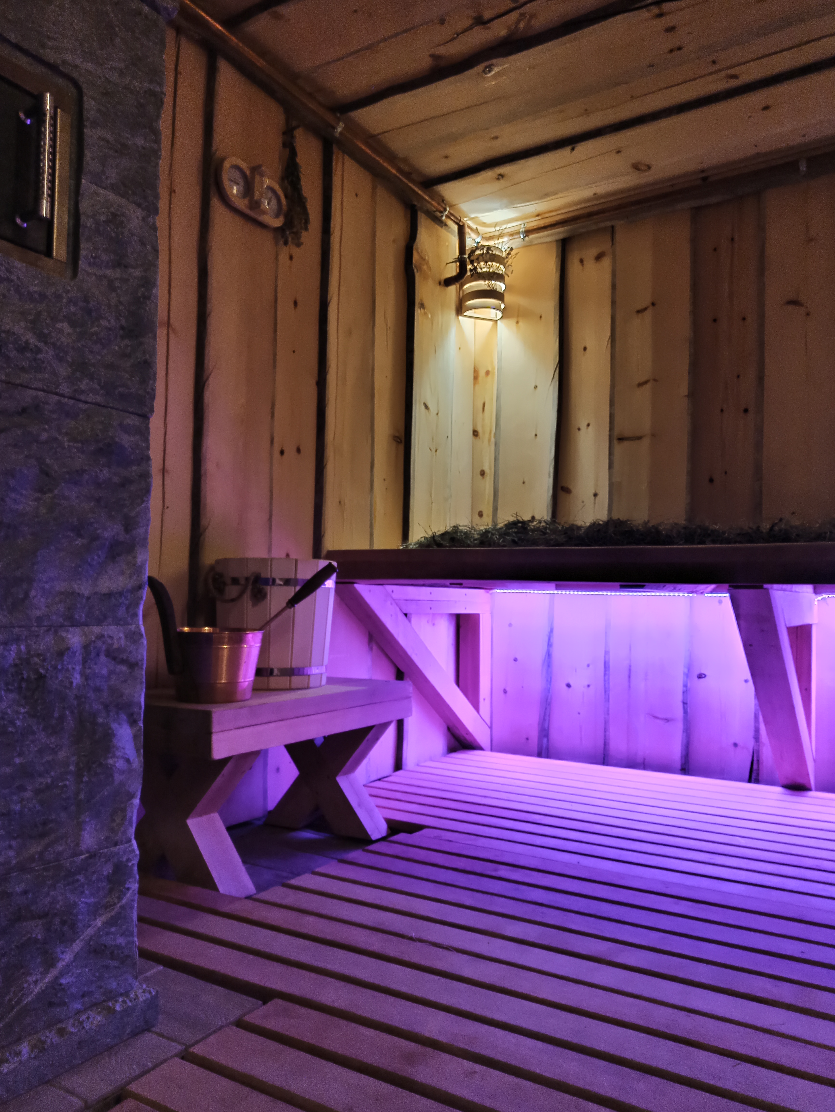Главное отличие — в микроклимате: в сауне поддерживается высокая температура при низкой влажности, а в хаммаме — мягкое тепло при 100% влажности. Также они различаются материалами: сауна чаще всего отделывается деревом, а хаммам — камнем, плиткой или мозаикой.